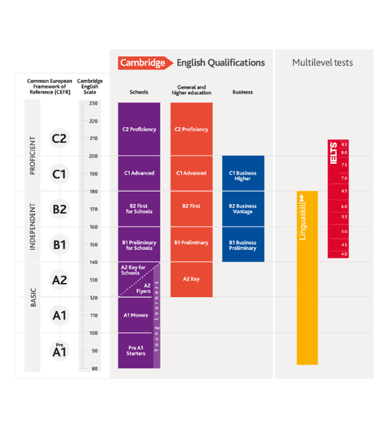 We offer a continuous path from Pre A1 Starters to C2 Proficiency. Since language learning is a lengthy process, having regular milestones is crucial. Our exams provide the necessary focus and pace to keep students motivated throughout their journey.
